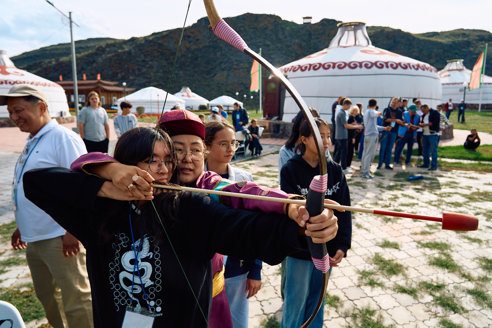 Ещё одним событием дня стал мастер-класс по стрельбе из традиционного лука. Раньше тувинские мастера делали луки из рога, сухожилий и дерева, а сегодня используют современные материалы, сохраняя при этом форму и баланс старинного оружия. Такие луки легче спортивных и обладают более мягким выстрелом, но требуют больше навыков в обращении.