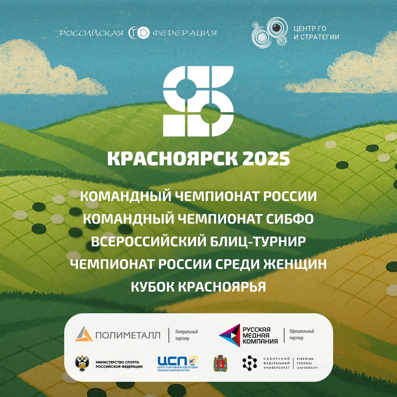 На сайте https://красноярьего.рф/ вы найдёте всю информацию о соревнованиях, месте их проведения, вариантах размещения и экскурсиях. Напоминаем, что для заселения в общежитие СФУ, помимо паспорта, необходимо иметь при себе СНИЛС. Регистрация на соревнования и экскурсии заканчивается 14-го числа в 20:00 по московскому времени. Оплатить турнирный взнос теперь можно на сайте РФГ. Чтобы быть в курсе всех новостей и событий, подписывайтесь на наш телеграм-канал: https://t.me/krasnoyarsk_go_2025.