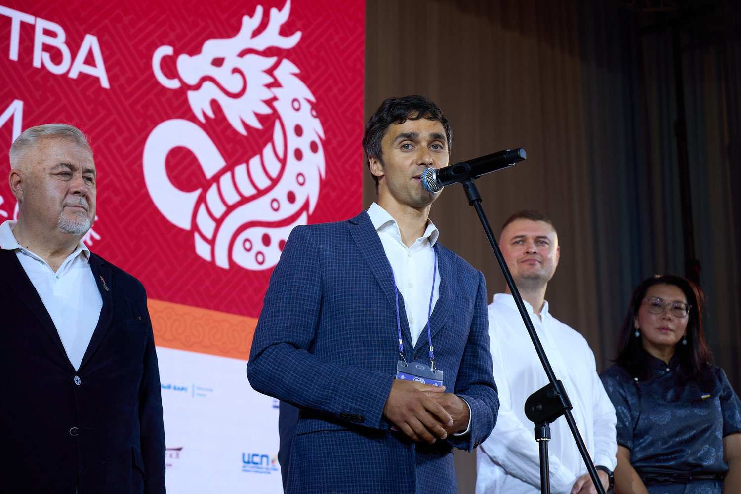 Президент Бурятской федерации Го Виталий Раднаев во время своего приветствия затронул тему искусственного интеллекта и пожелал всем хорошей игры и удачи.