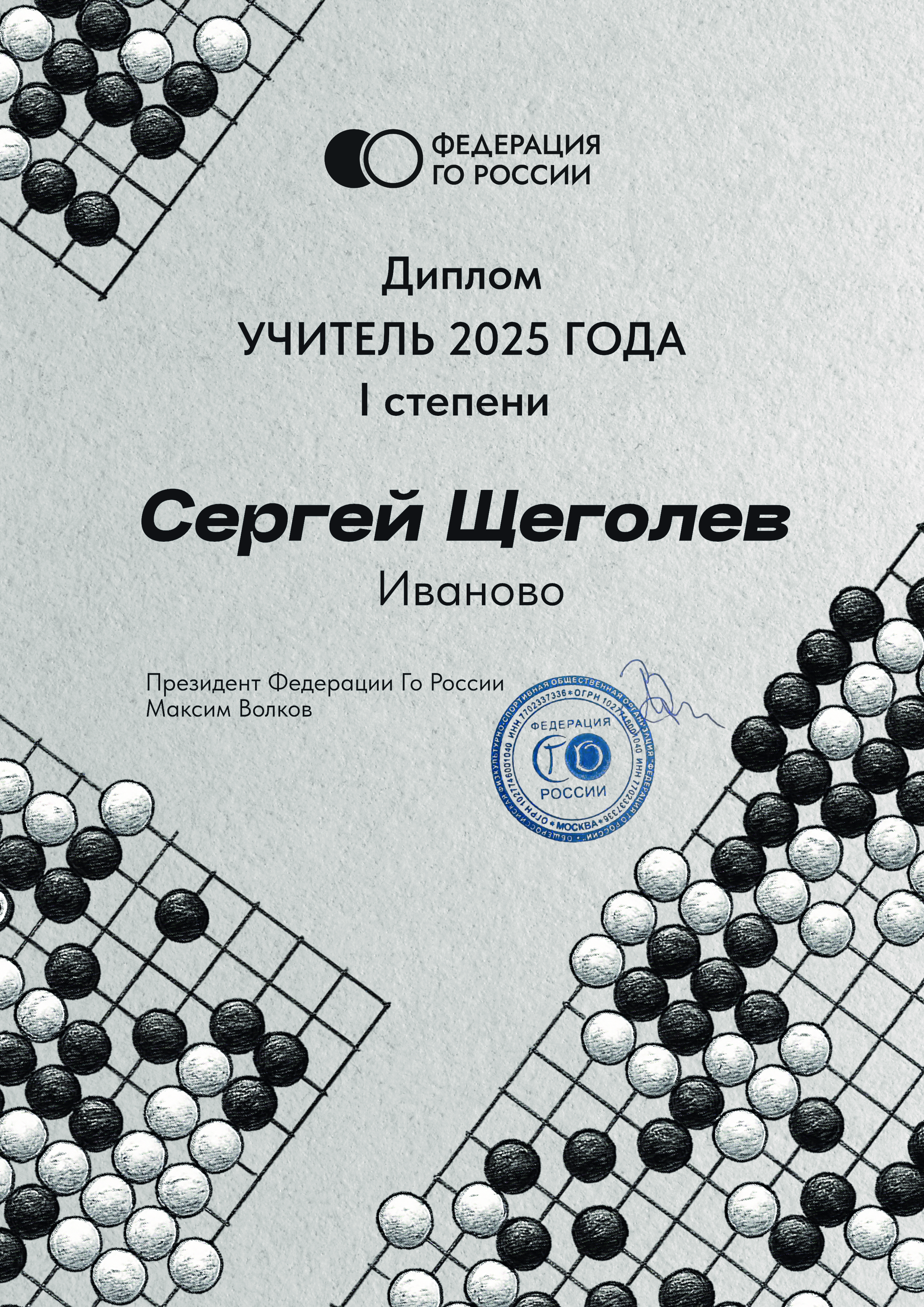 Подсчет баллов и проверка данных завершились победой Сергея Щеголева из Иваново! Он становится обладателем званиям "Учитель Года" в 2025 году! На одном из ближайших турниров Сергею будет передан главный приз – набор камней из ракушки в чашах.