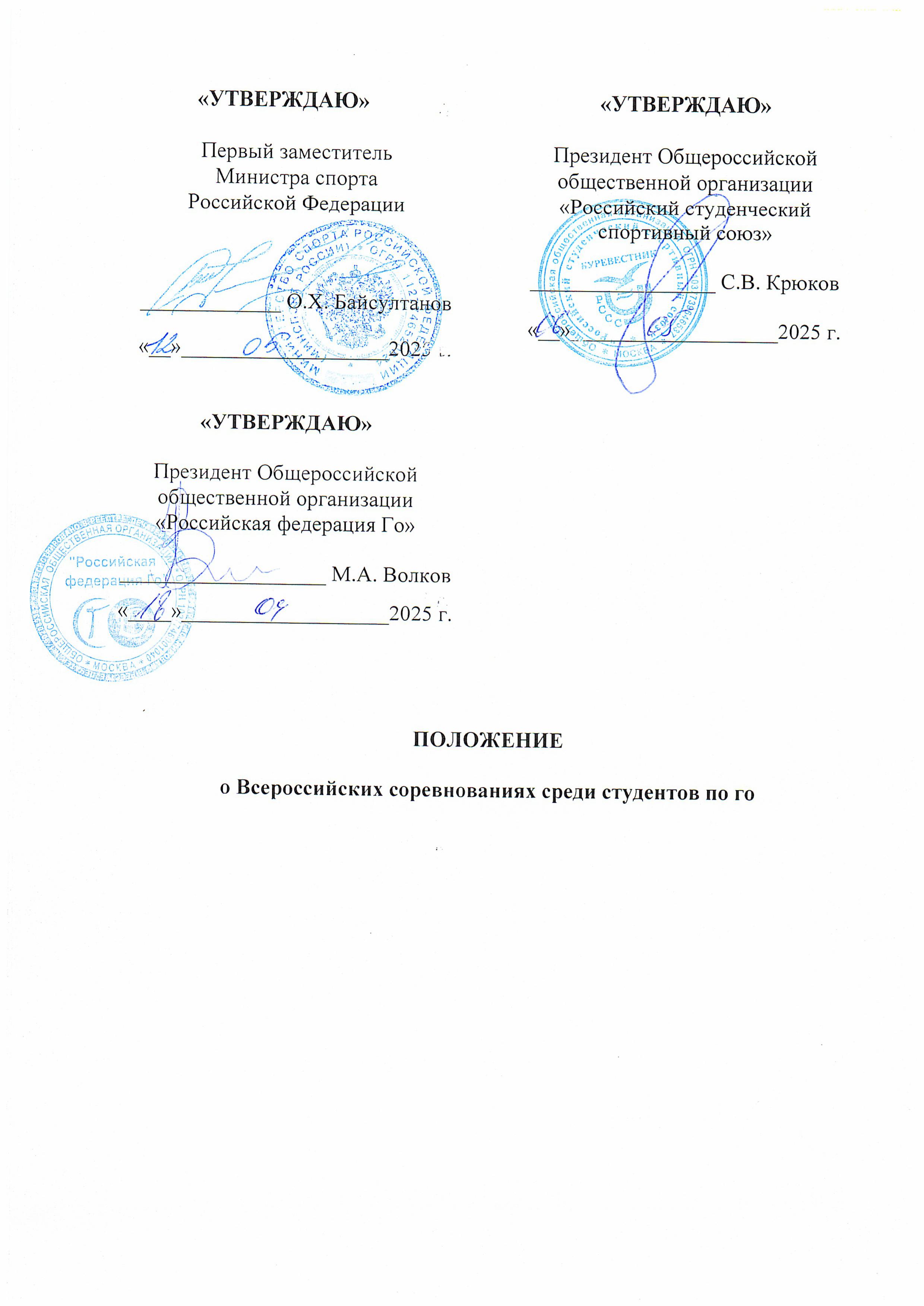 Всероссийские соревнования среди студентов по го (далее – Соревнования) проводятся в рамках реализации государственной программы Российской Федерации «Развитие физической культуры и спорта» в целях развития вида спорта «го» в Российской Федерации.